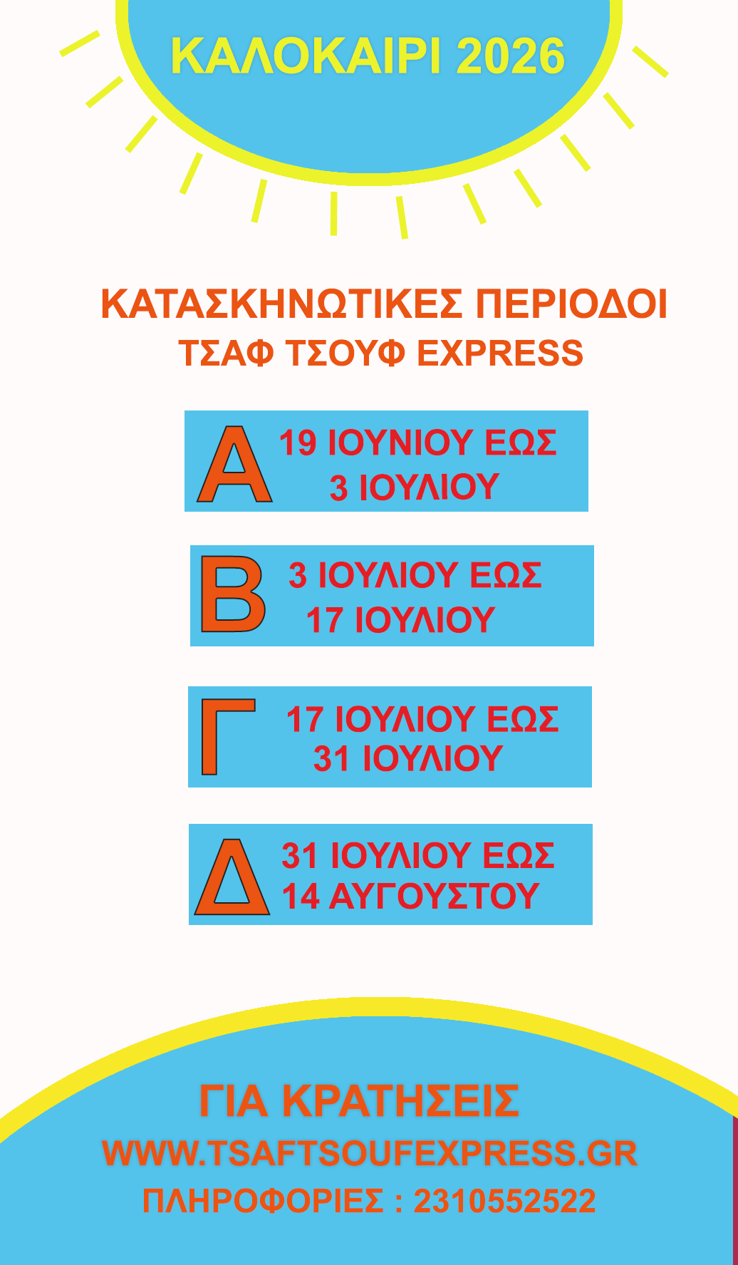 Μελετήστε και επιλέξτε την περίοδο που θα θέλατε να συμμετέχετε στο κατασκηνωτικό πρόγραμμα της ΤΣΑΦ ΤΣΟΥΦ express.